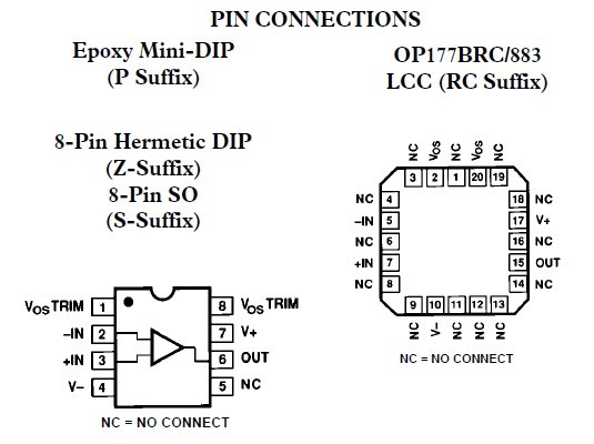 The OP177GS features the highest precision performance of any op amp currently available. Offset voltage of the OP177 is only 10mV max at room temperature and 20mV max over the full military temperature range of -55℃ to +125℃. The ultralow VOS of the OP177GS, combines with its exceptional offset voltage drift (TCVOS) of 0.1mV/℃ max, to eliminate the need for external VOS adjustment and increases system accuracy over temperature.
